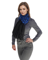 상단에 강렬한 레오파드 패턴이 있고, 하단으로 갈수록 단색으로 자연스럽게 이어지는 옴브레 디자인의 롱 스카프입니다.